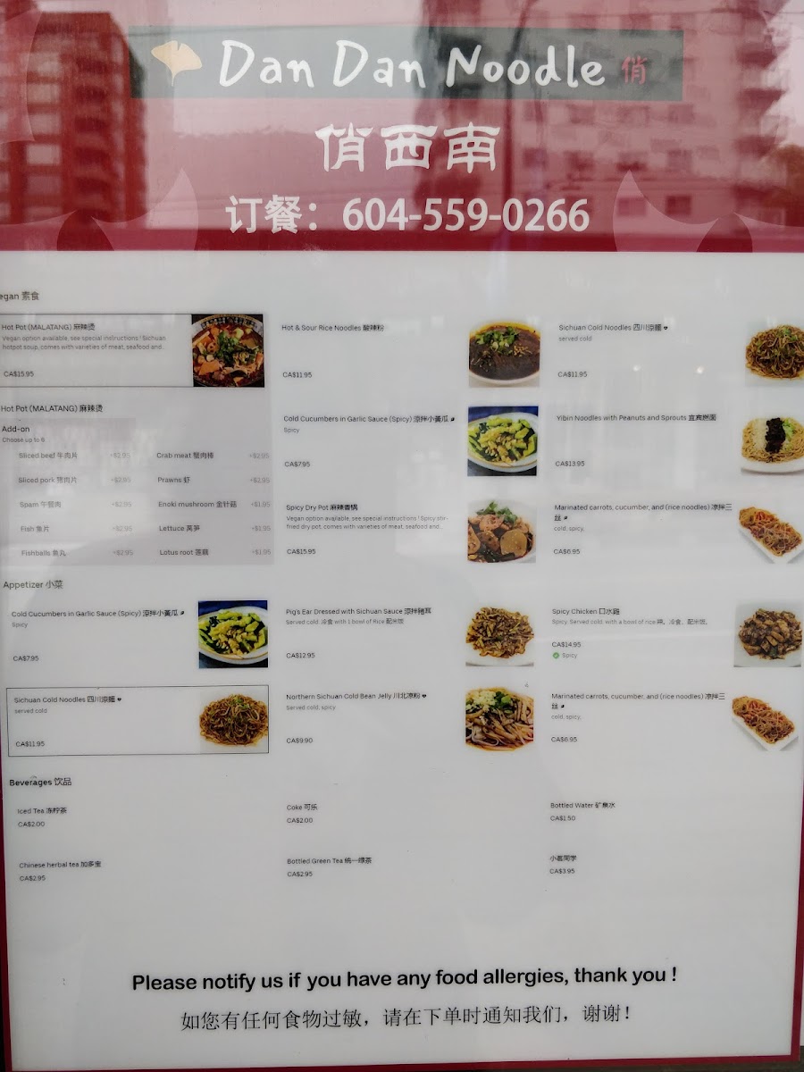 In summary, if you're seeking an authentic Sichuan experience in Vancouver, Dan Dan Noodle ticks all the boxes. With its enticing menu, welcoming atmosphere, and noteworthy customer service, it stands out as a must-visit destination for food lovers of all kinds.
